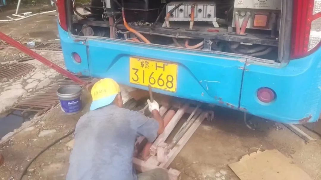 9月19日中午,筆者在樂平公交修理廠看到,工作人員正冒著炎熱對(duì)因發(fā)生電機(jī)控制系統(tǒng)等故障的幾臺(tái)公交車的進(jìn)行搶
