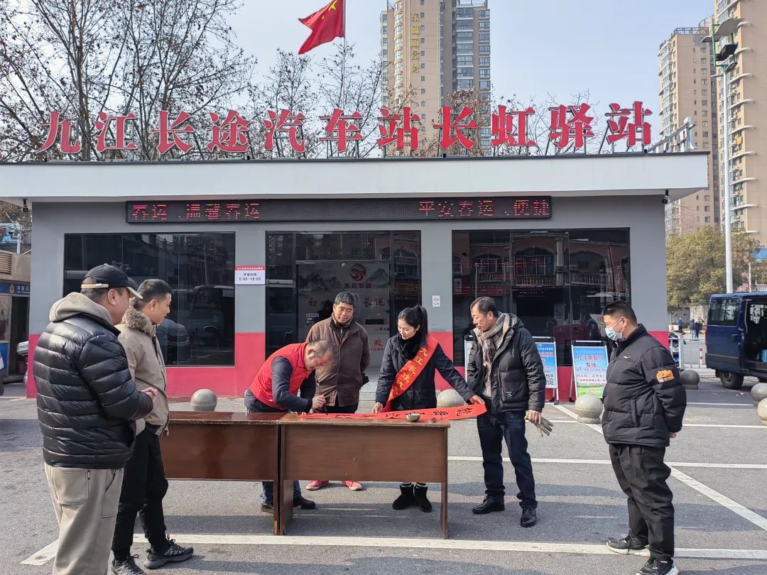 “龍舞長空萬象新,春回大地千山秀?!薄褒堯v虎躍人間景,鳥語花香天地春。”2月8日上午,九江長途汽車站組織書